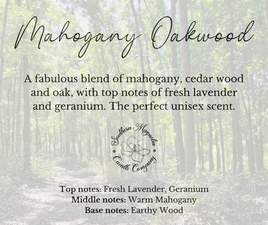 Mahogany Oakwood - A fabulous blend of mahogany, cedar wood and oak, with top notes of fresh lavender and geranium. The perfect unisex scent.